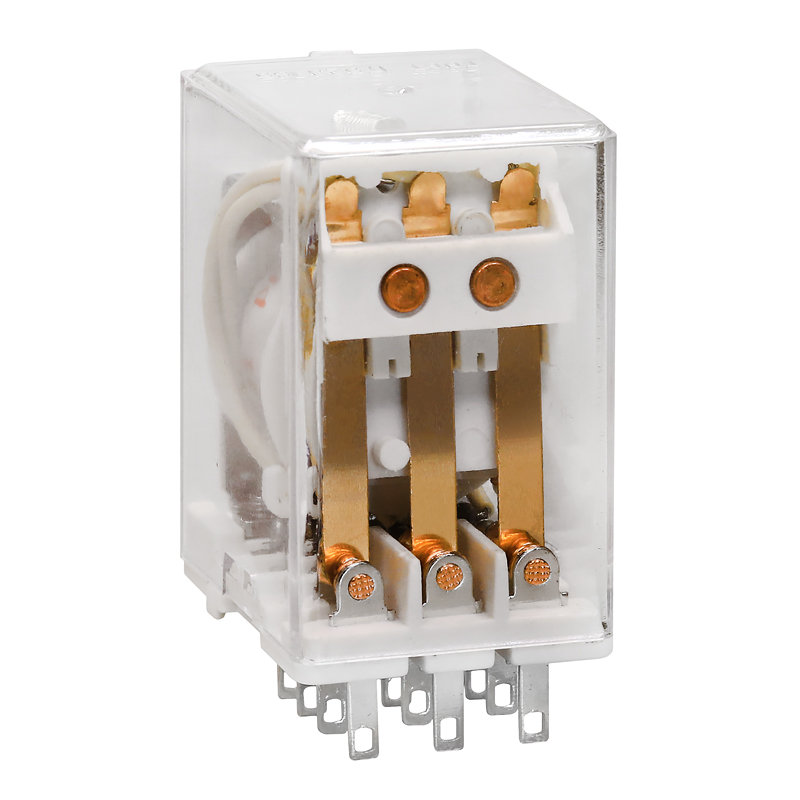 Реле промежуточное в сборе состоит из непосредственно самого реле и розетки. Розетка предназначена для монтажа цепей управления и питания катушки управления реле, а также является основанием для подключения реле с помощью разъемного соединения. Все розетки комплектуются металлическим хомутом для фиксации реле в розетке.
