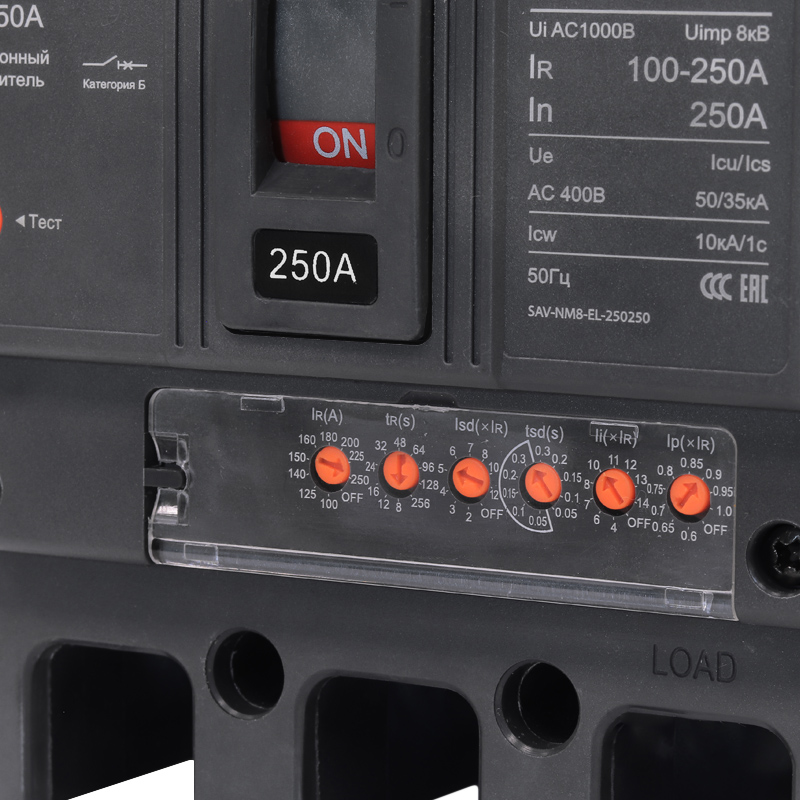 Ключевые особенности: электронный расцепитель, регулировка тока срабатывания, работа в сетях до 690В, высокая отключающая способность.