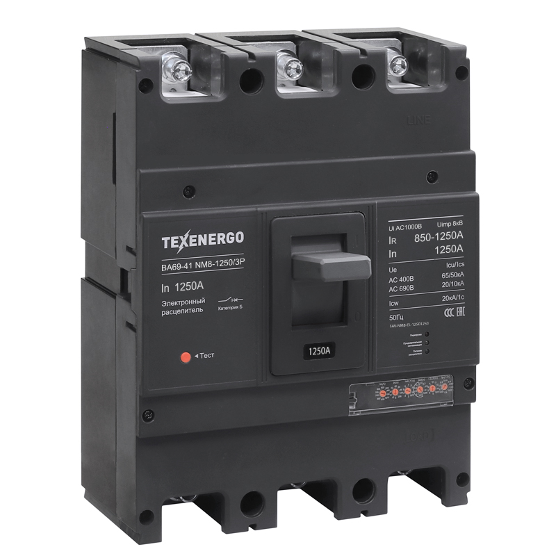Универсальный автоматический выключатель серии ВА69 NM8 в литом корпусе электронного типа. Применяется для распределения электроэнергии в сетях переменного тока частотой 50/60 Гц с номинальным напряжением до 690 В и током до 1250 А. Модели с номинальным током до 630 А могут использоваться для защиты электродвигателей. Выключатель оснащен электронным расцепителем с широким диапазоном регулировки и обеспечивает надежную защиту от токов перегрузки и короткого замыкания. Устройство предназначено для нечастых оперативных включений и отключений линии.