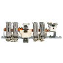Как работает контактор. На металлической рейке, являющейся базовой деталью контактора, смонтирована неподвижная часть электромагнита с включающей катушкой, неподвижные контакты с дугогасительным устройством и вспомогательные контакты. Подвижные части контактора закреплены на валу, вращение которого осуществляется в подшипниках скольжения.